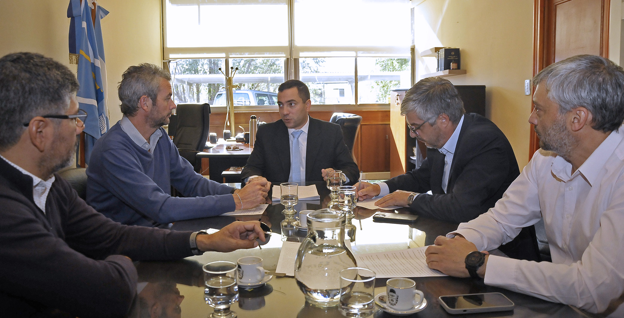 En un encuentro realizado esta mañana con el ministro de Infraestructura, Obras y Servicios Públicos, Gustavo Aguilera; de Ambiente y Control del Desarrollo Sustentable, Roberto Jure; con el secretario de Pesca, José Aguilar y el administrador general de Recursos Hídricos del Chubut, Nicolás Cittadini, Giacomone informó a los funcionarios la decisión de presentar una denuncia ante la justicia ante la posible comisión de un delito ambiental.