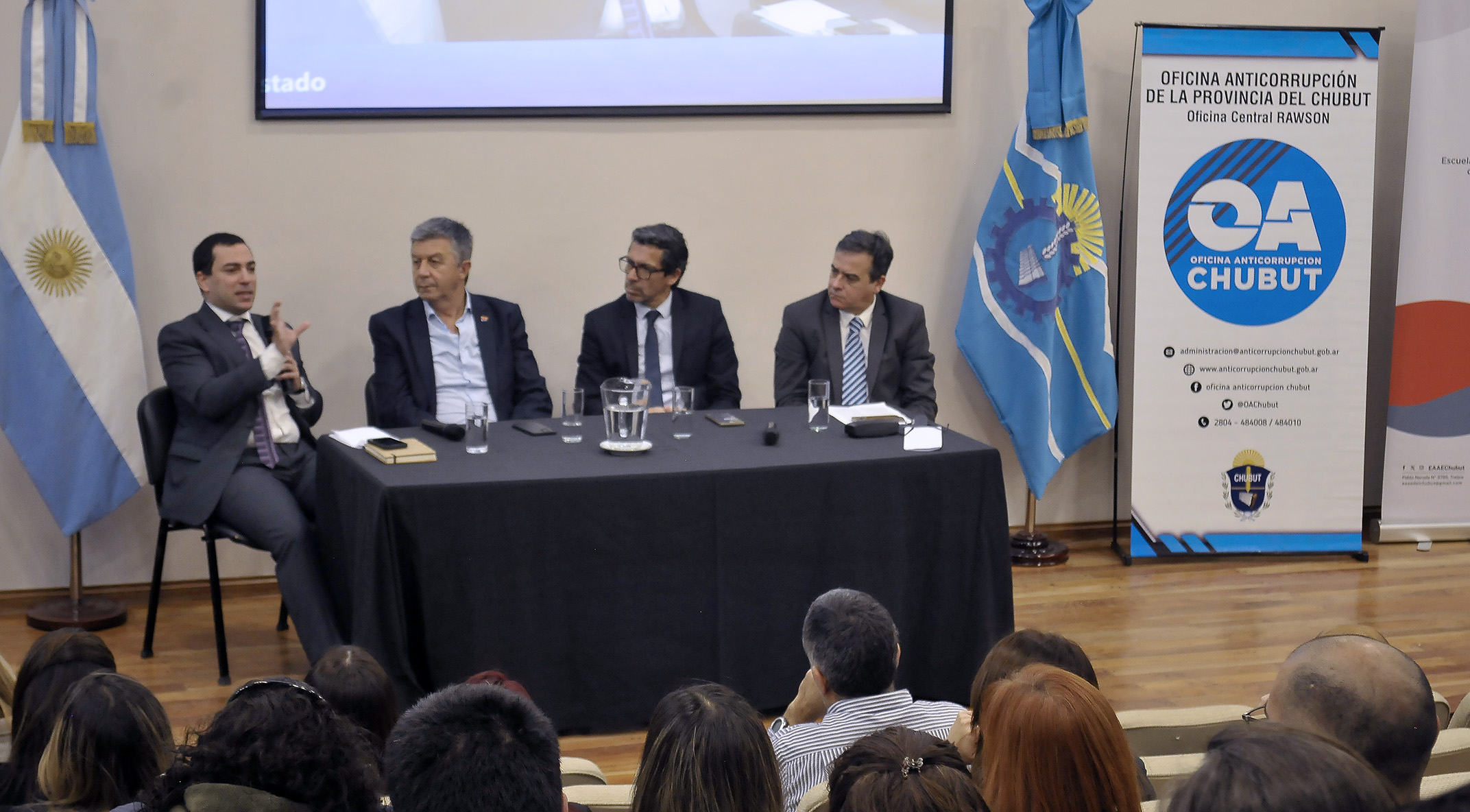 La actividad organizada por la Oficina Anticorrupción, con la colaboración de la Escuela de Abogadas y Abogados del Estado, fue presidida por el Gobernador, Ignacio Torres. Las autoridades del organismo participaron en paneles en los que se abordó la necesidad de robustecer la transparencia y la eficiencia en los procesos administrativos de los organismos públicos.