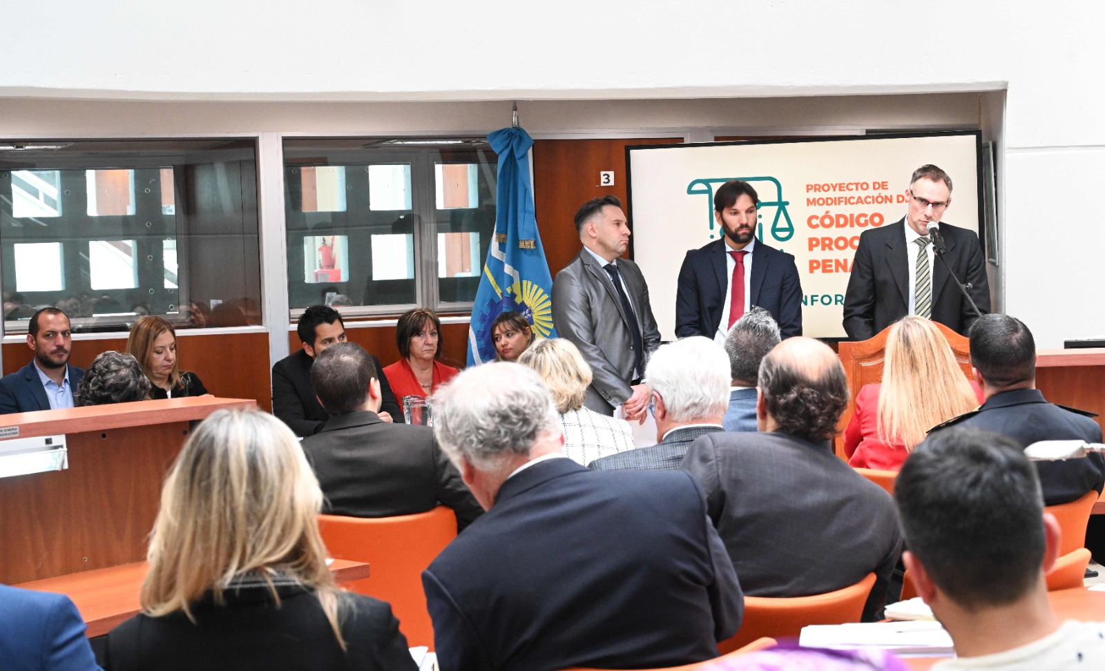 El Fiscal de Estado Adjunto de la provincia, Lucas Papini, tuvo a su cargo la presentación de las modificaciones que se proponen realizar en la reforma que alienta el gobernador Ignacio Torres y se focalizó, en particular, en la incorporación al código de la Agencia de Administración y Disposición de Bienes y Derechos Patrimoniales, en las diferentes etapas del proceso penal.